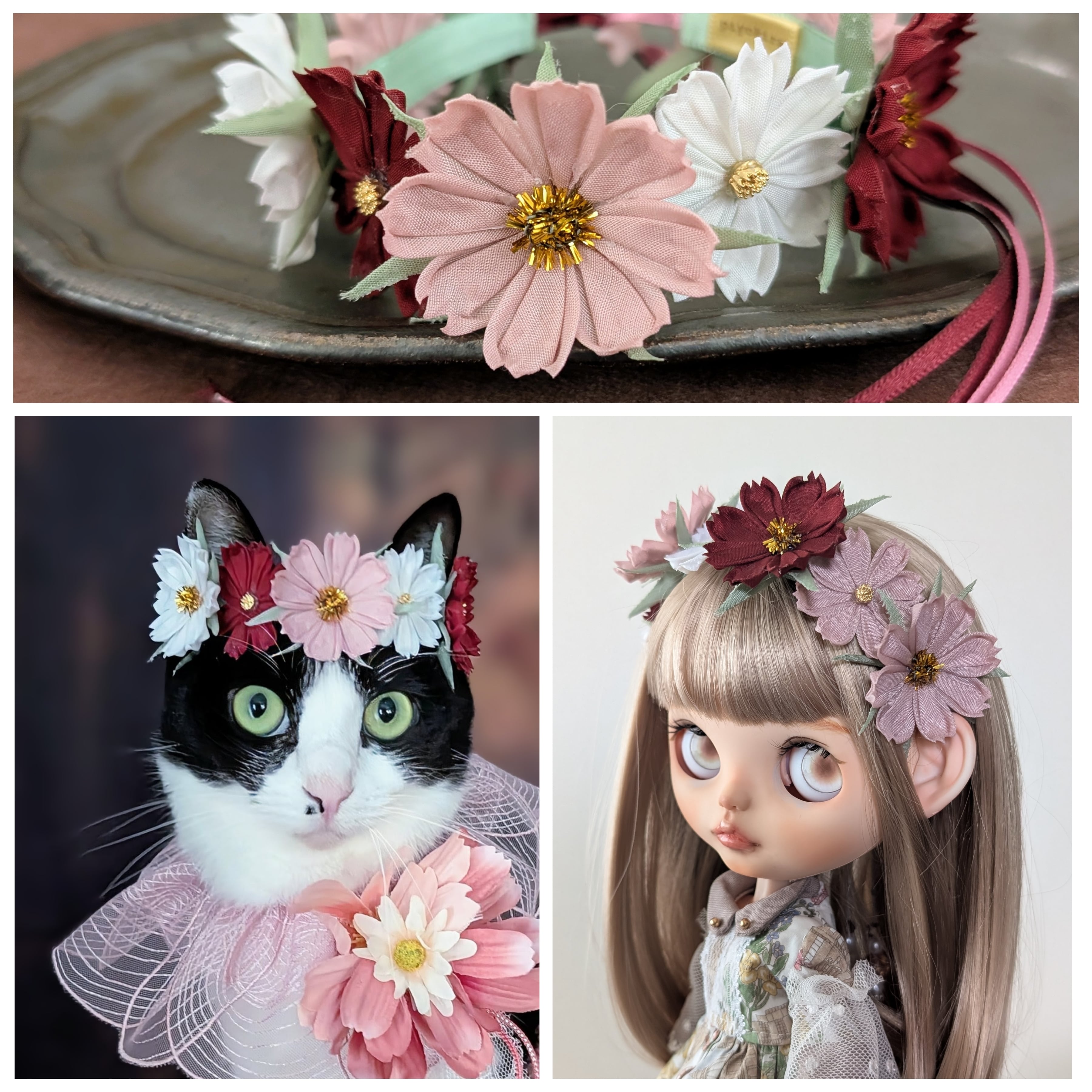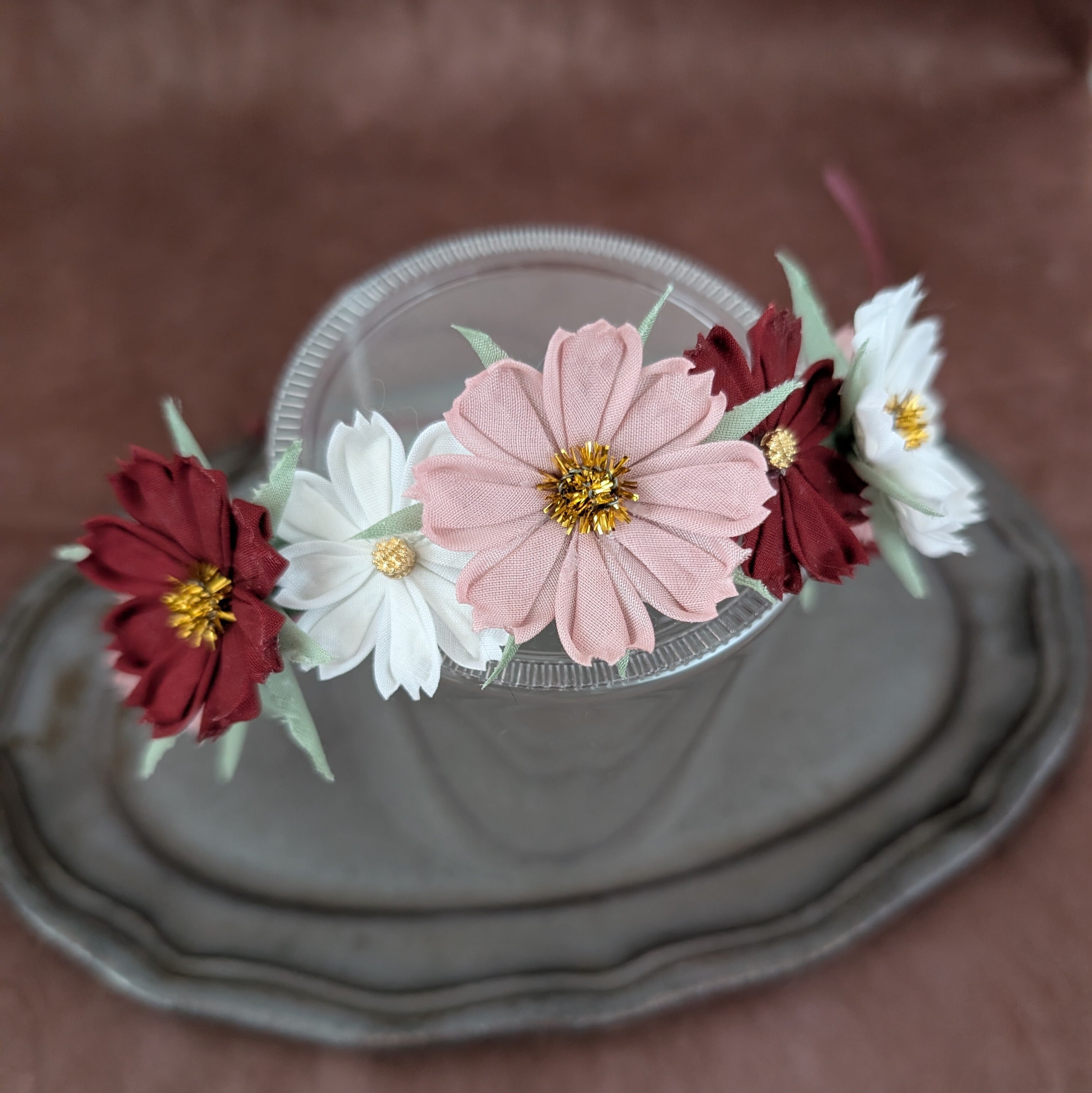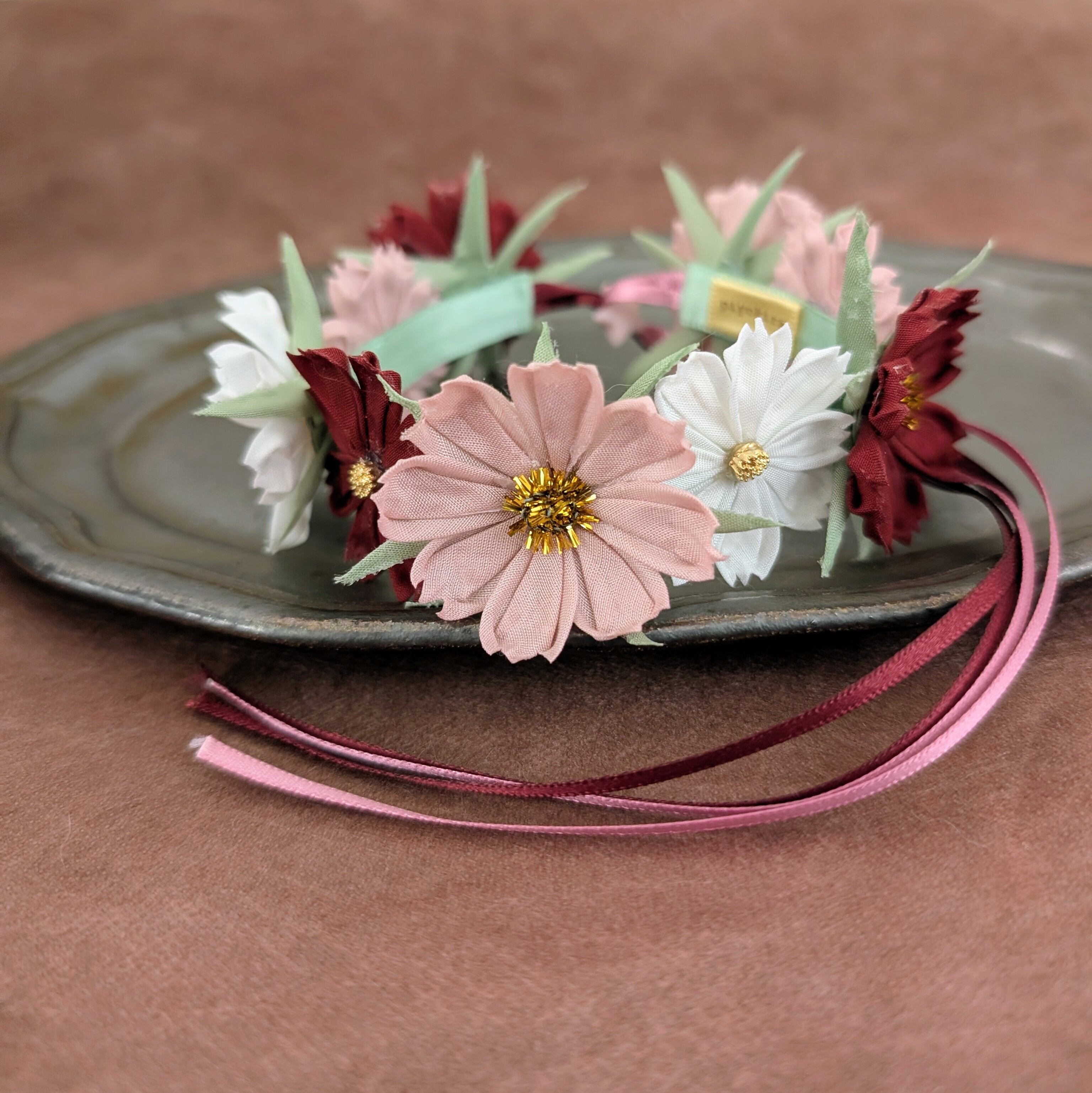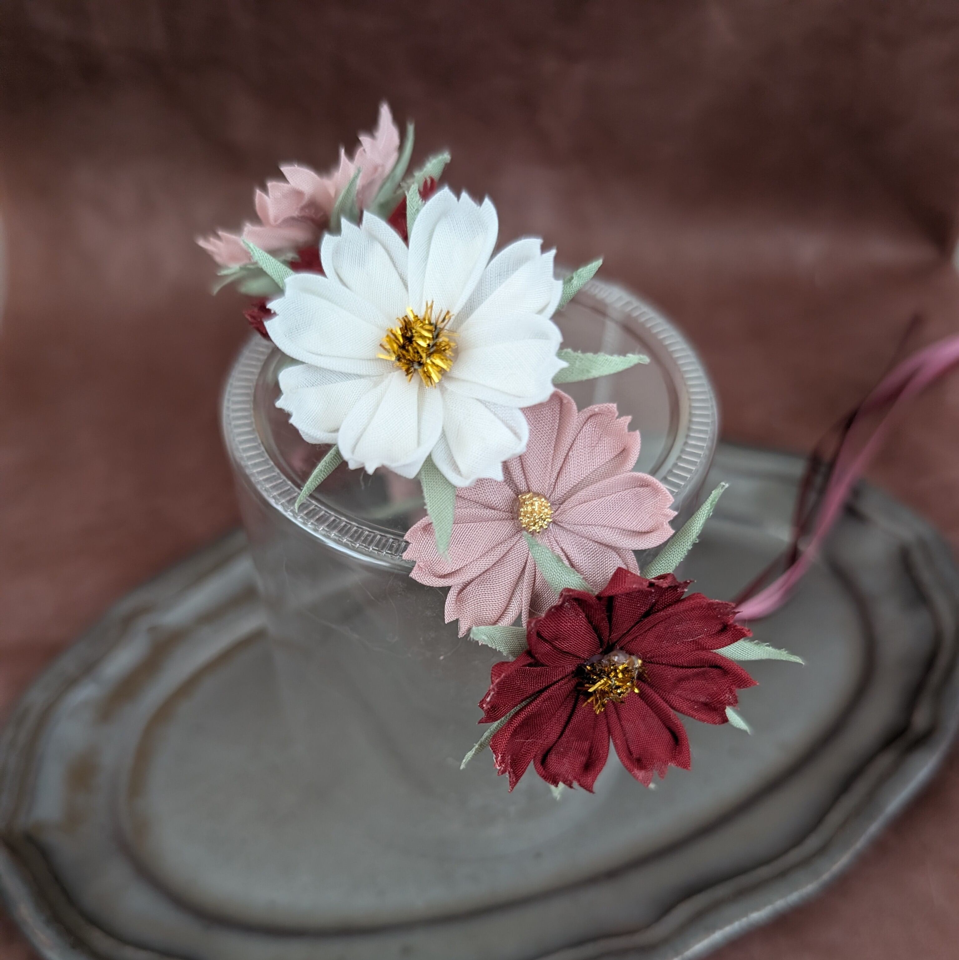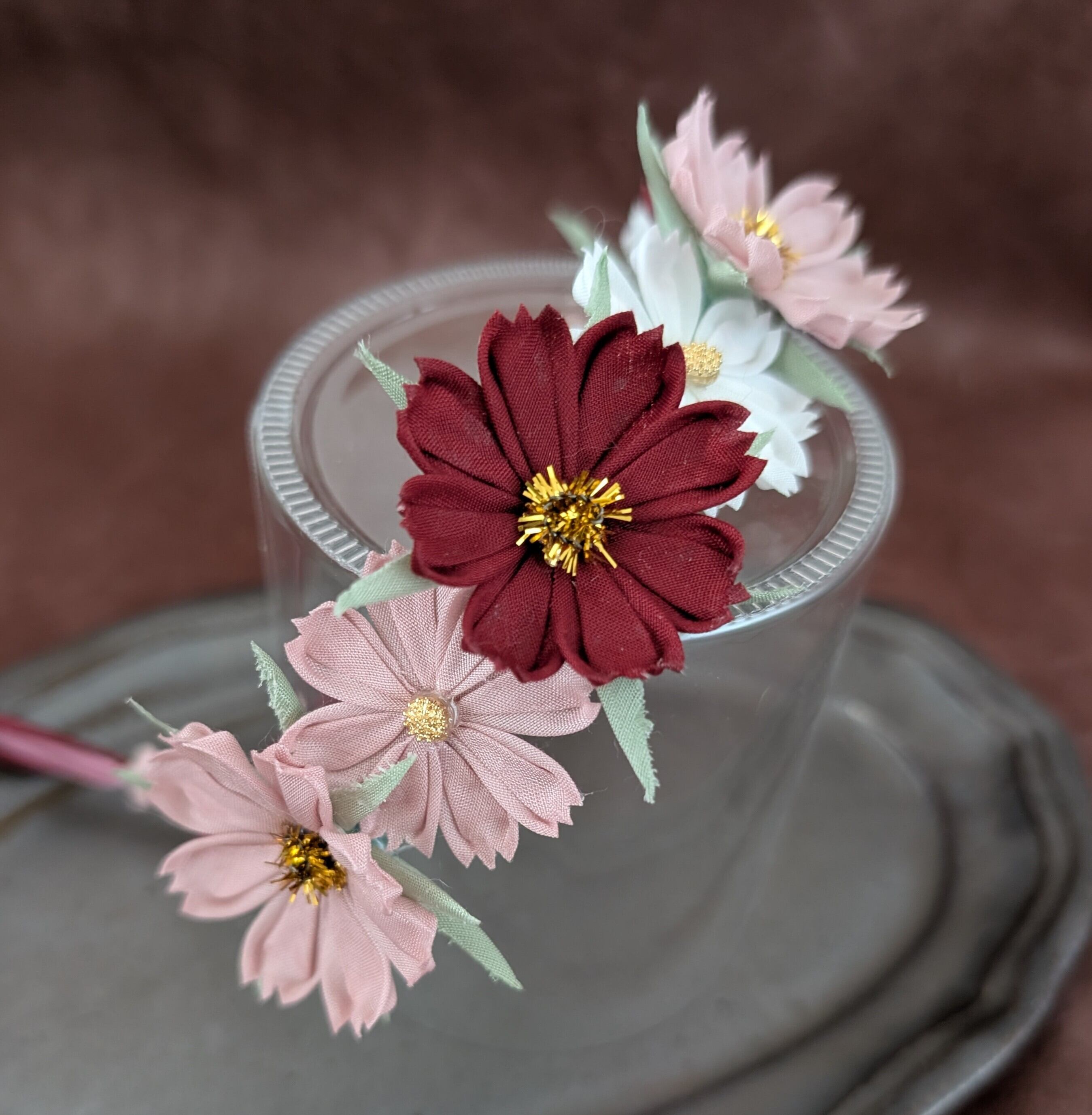 撮影用の つまみ細工のお花のヘッドアクセサリーです