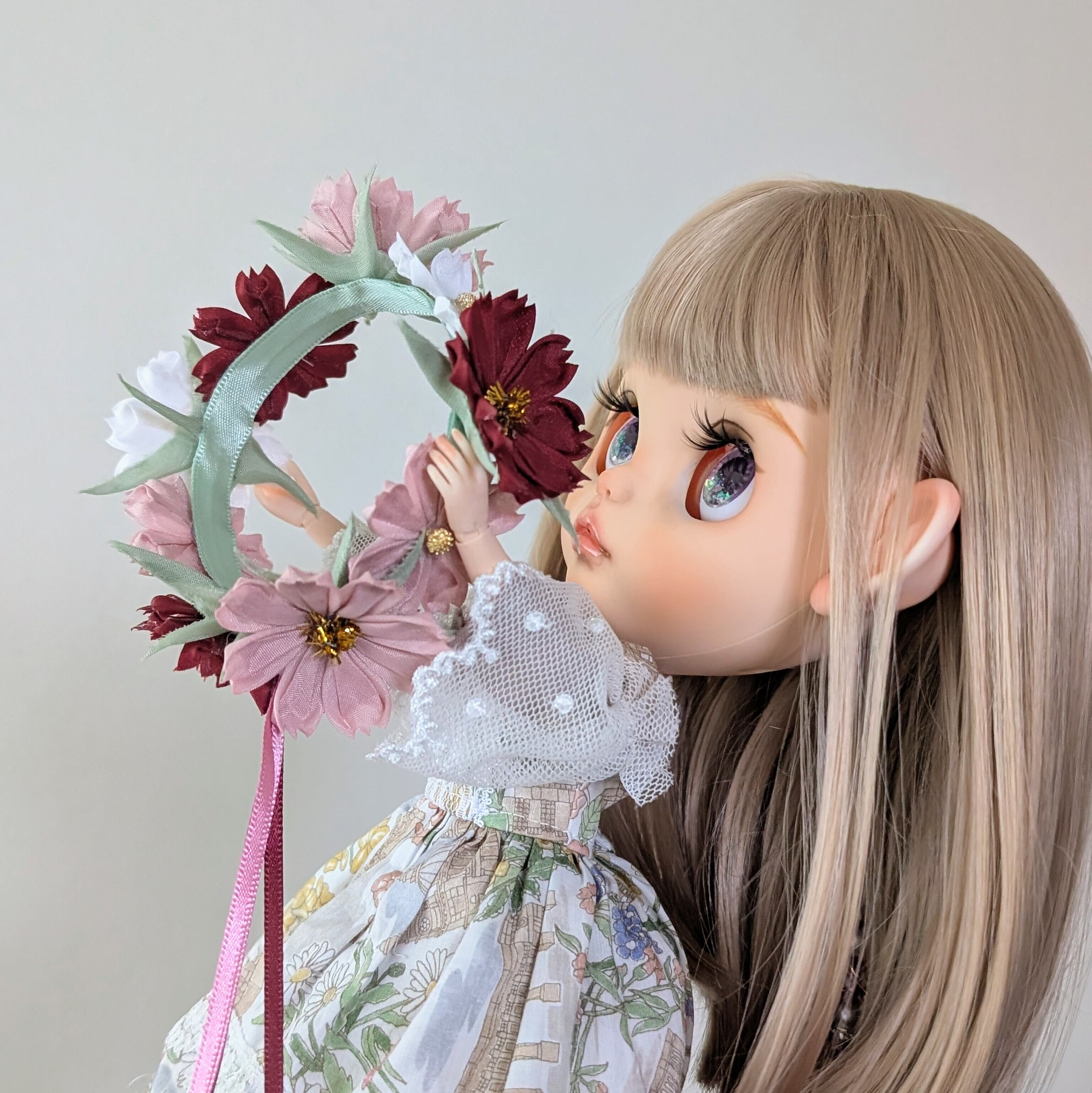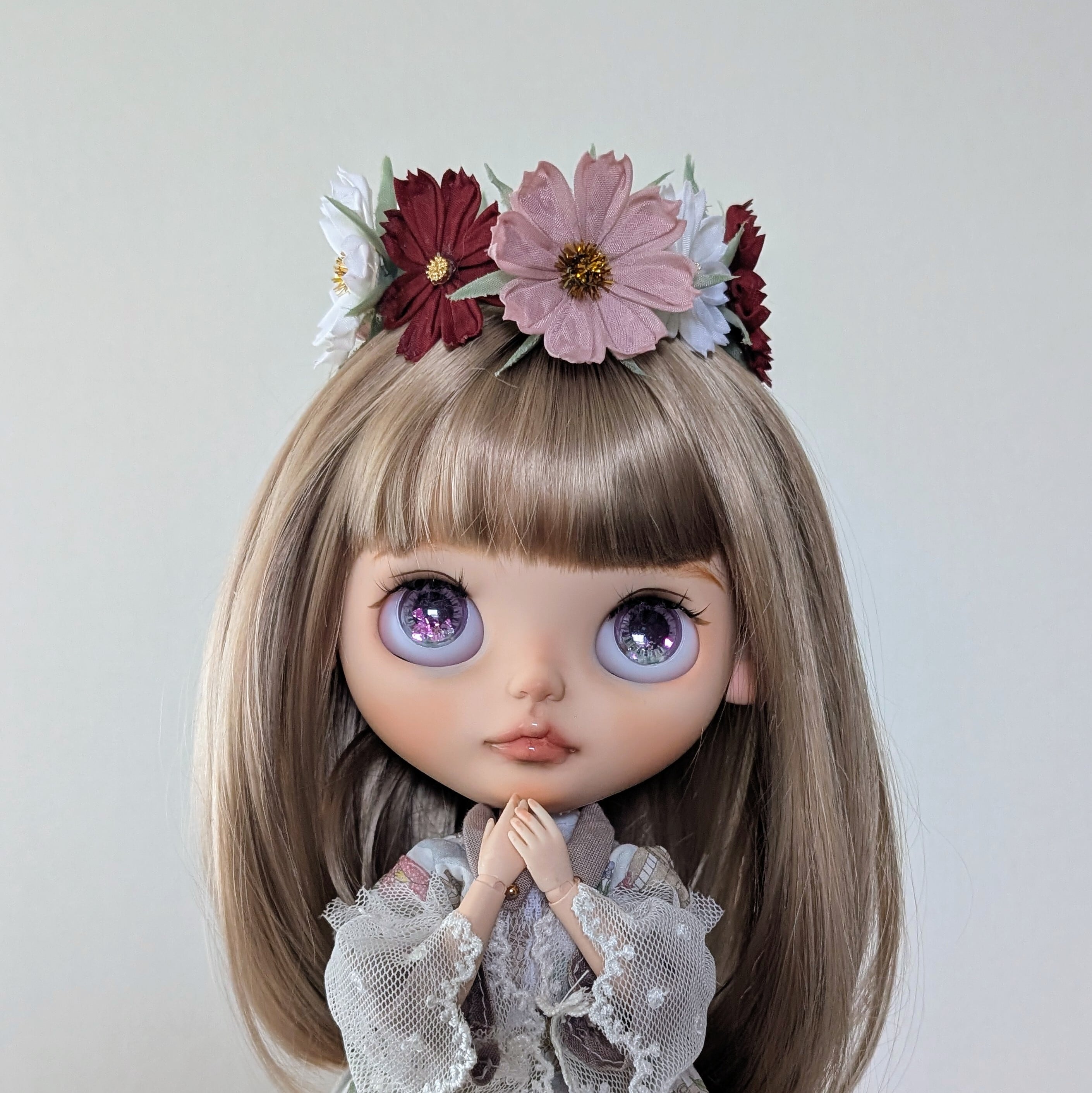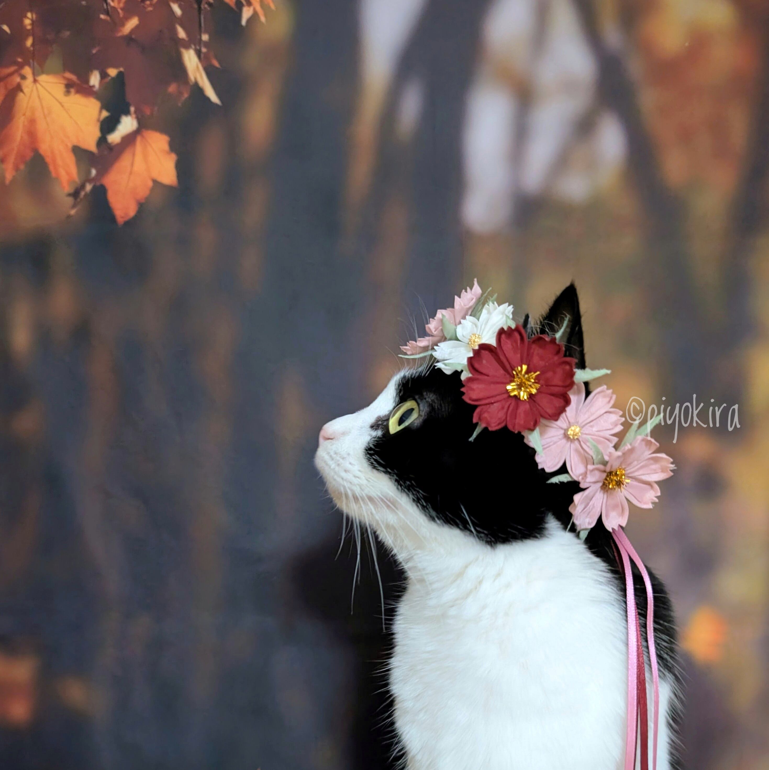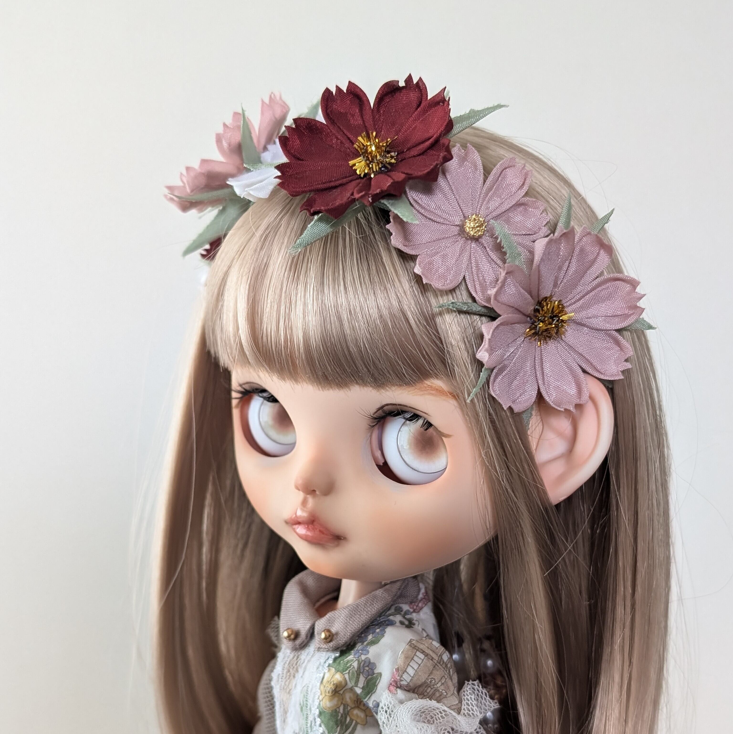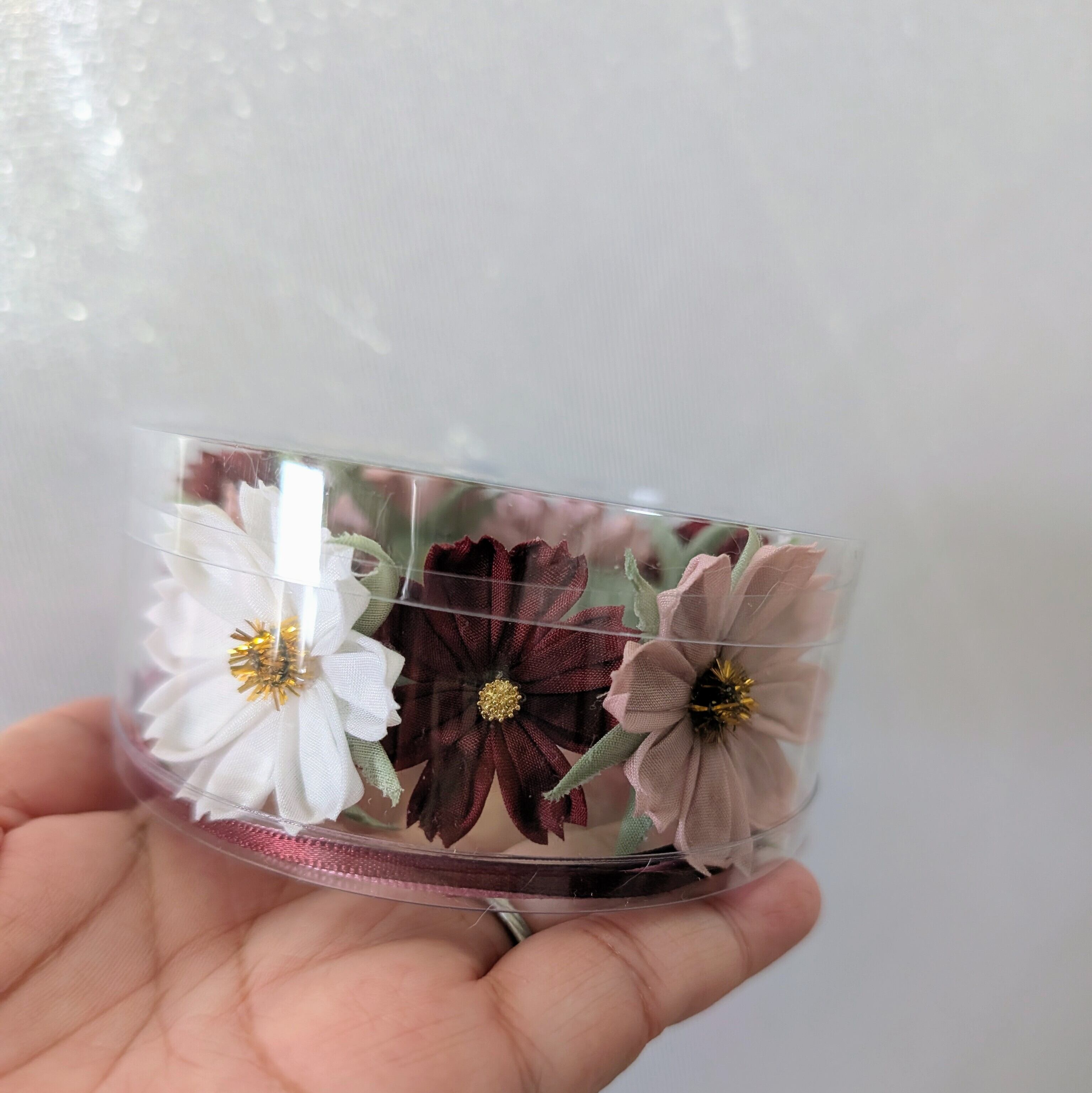 撮影用の つまみ細工のお花のヘッドアクセサリーです