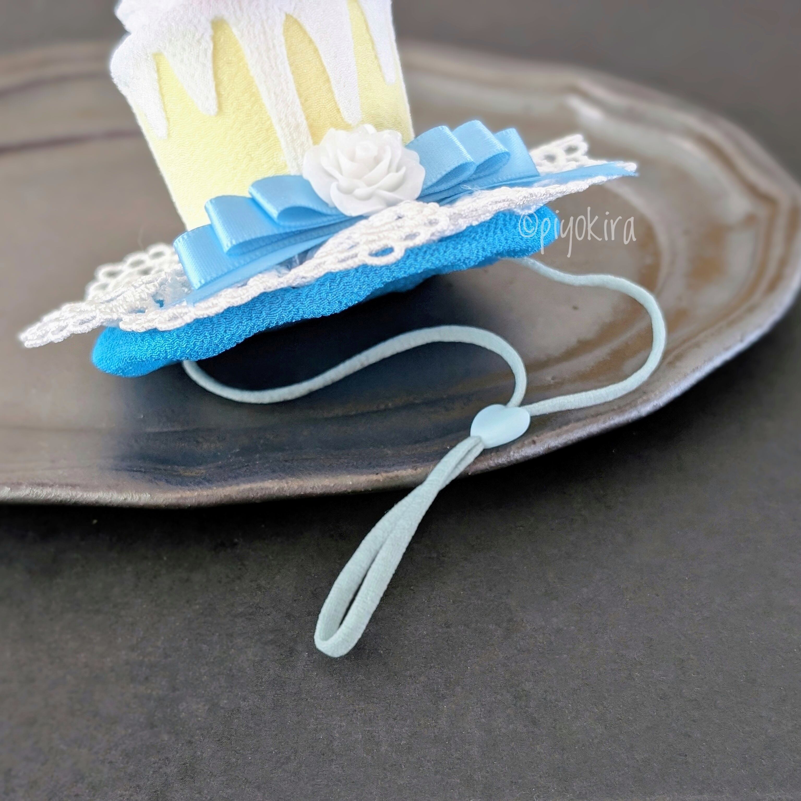 ・サイズ:高さ約8cm、ケーキ部分直径5cm、ブリム直径10cm