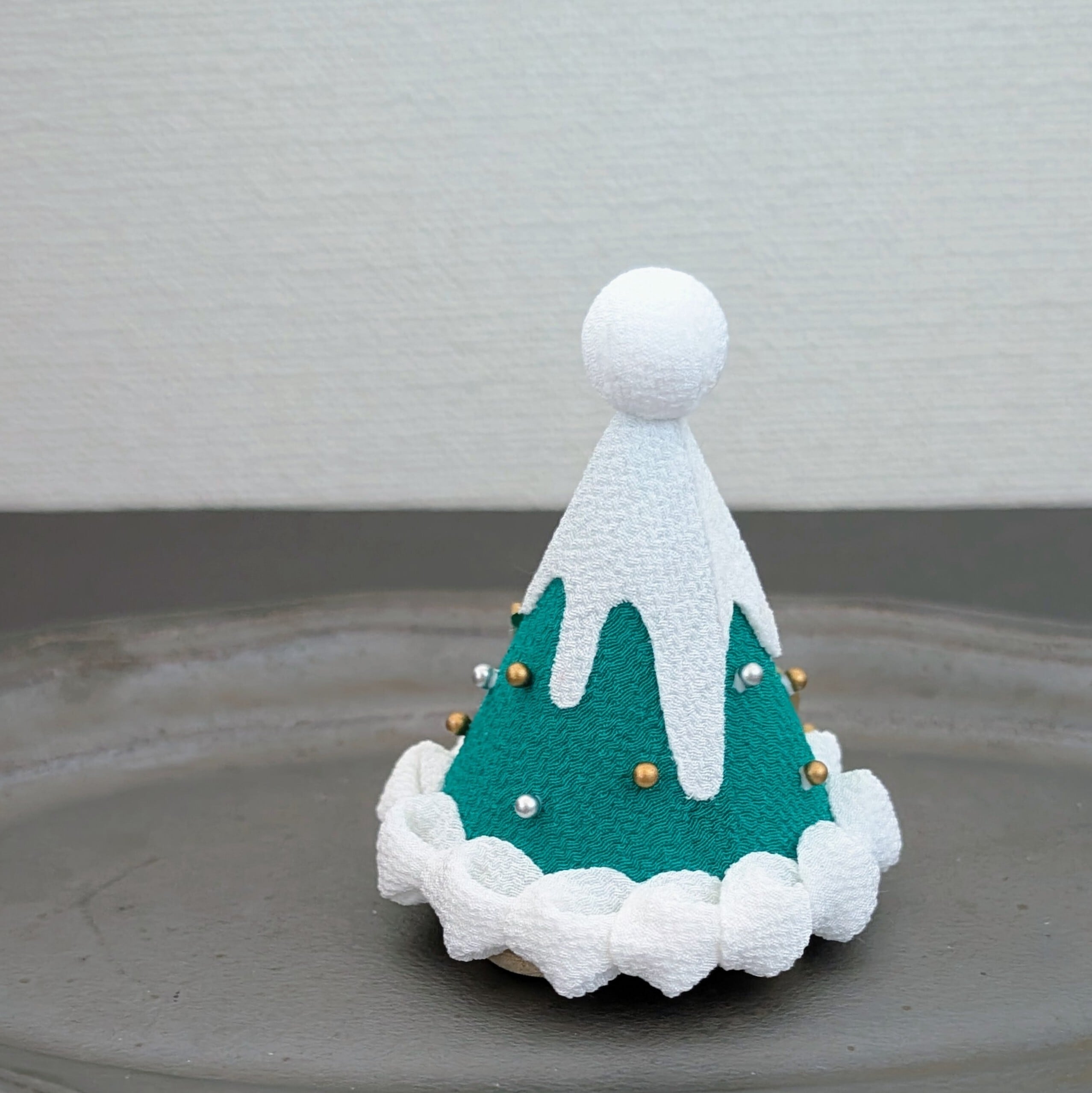 雪が積もるクリスマスツリーをケーキで表現したものを