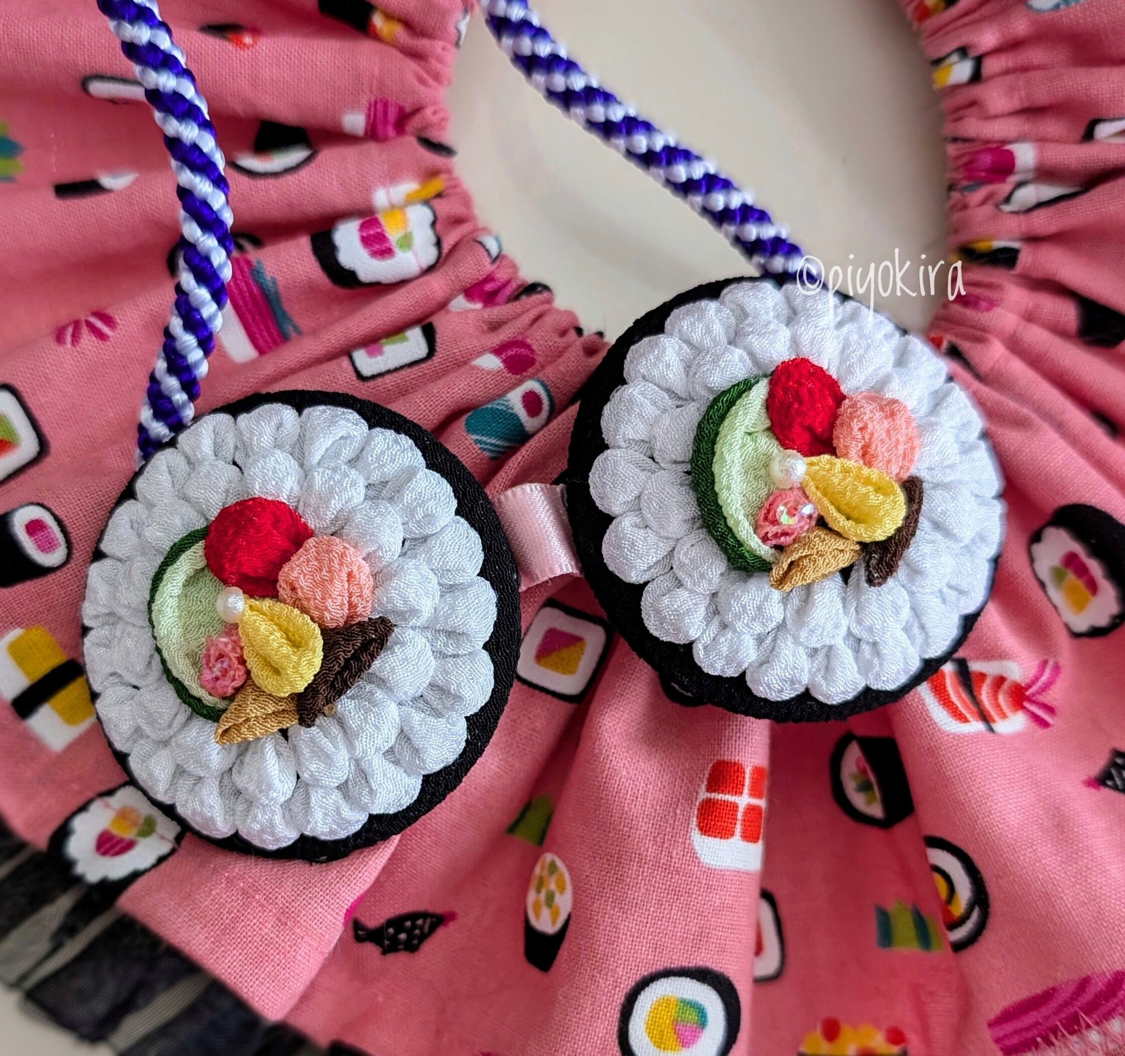 恵方巻の断面をつまみ細工で表現したビキニトップです